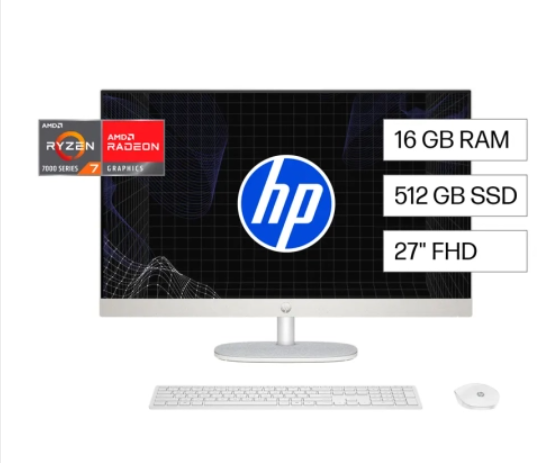 Computadora HP AiO 27-cr0275la de 27″ FHD, AMD R7-7730U, 16GB RAM, 512GB SSD